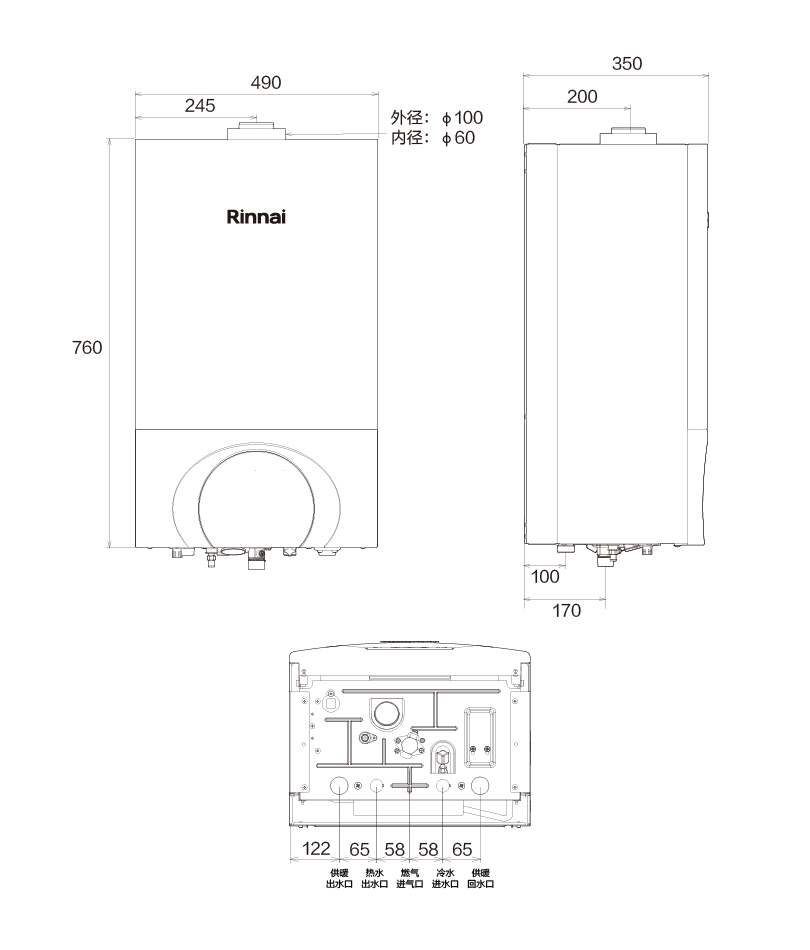 給排氣管直徑(mm) : φ100/φ60